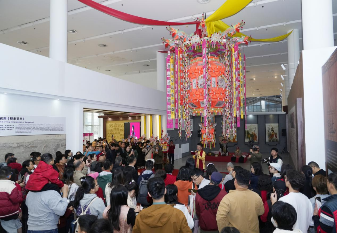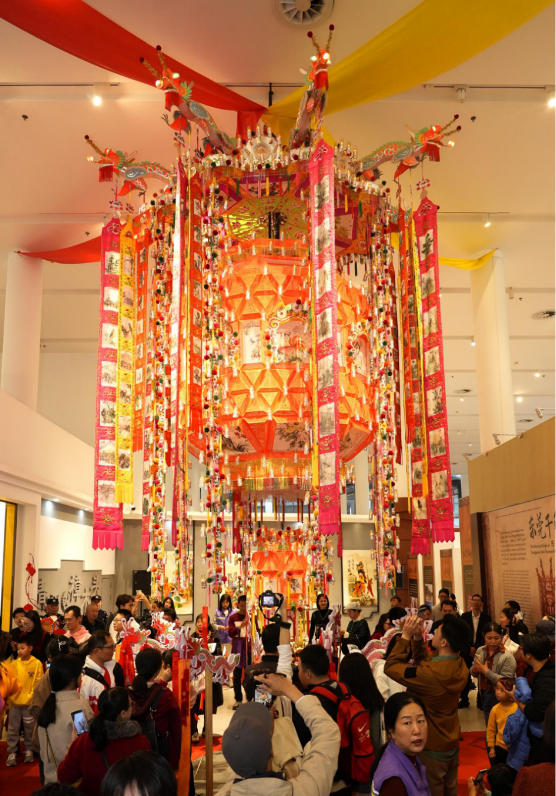 大家将写满祝福的祈福灯带,系在龙柱之上,共同点亮了东莞千角灯。霎时间,千灯齐明,照亮了非遗展厅,也照亮了人们对马年的期盼、对东莞的祝福。