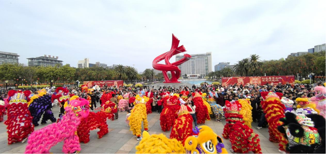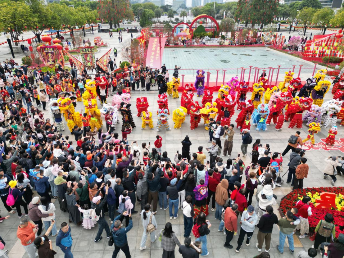 大年初二“开年日”,雨水节气遇上了东莞人走亲戚、回娘家的日子,市中心却比往常更热闹——千角灯亮了,百头狮子出动了,整座城市被这场热闹“叫醒”了。