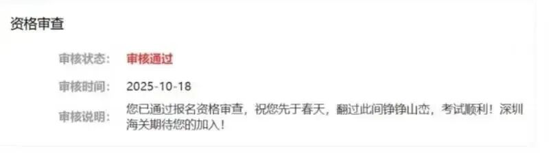 国家公务员和广东省公务员考试报名审核截止前夕,深圳海关以一段诗意的资格审核说明,为焦灼等待的考生送上鼓励与祝福。短短数十字在社交平台刷屏,不少考生直呼“被深圳海关暖心到了”。