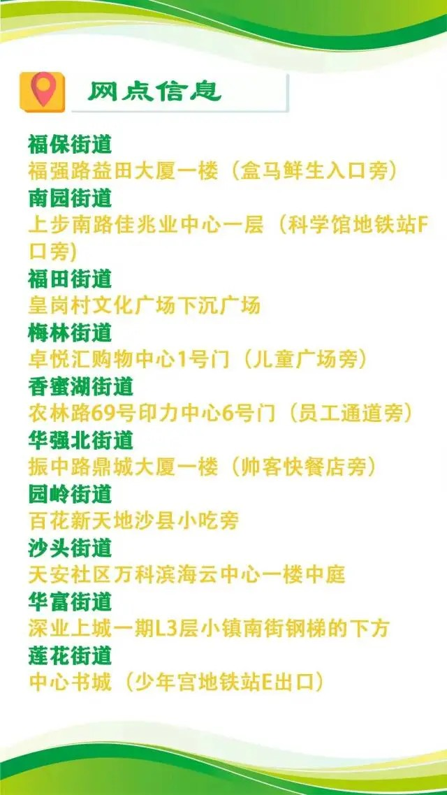 福田区“食物银行”网点信息